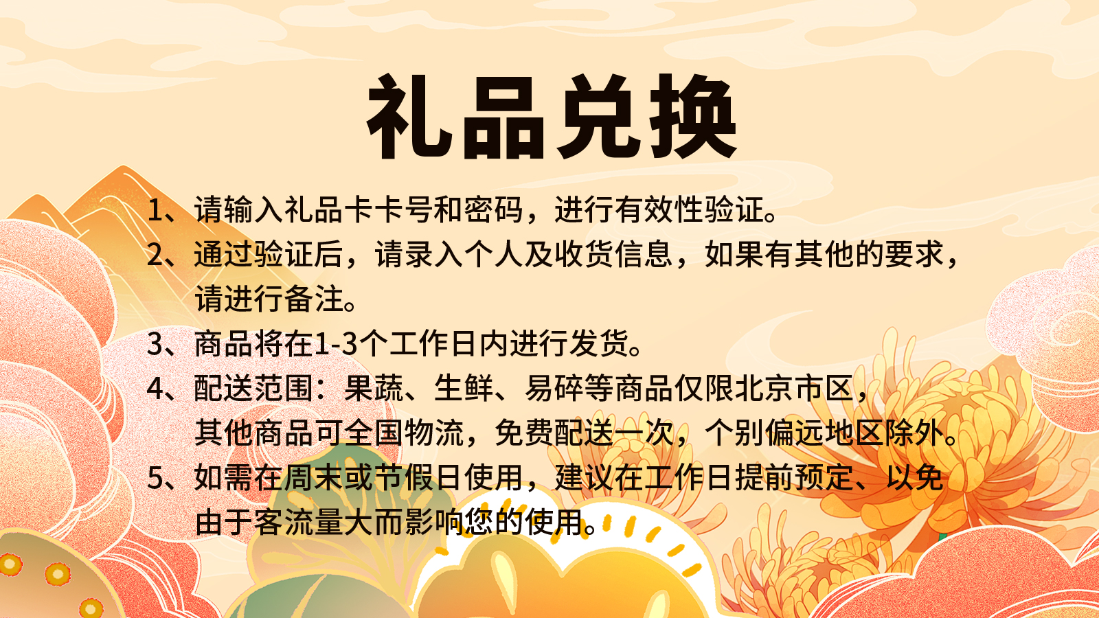 温馨提示:尊敬的客户您好!由于节后提货高峰,请您优先选择手机或者微信兑换,如有疑问请您拨打客服电话,给您带来的不便敬请谅解!!